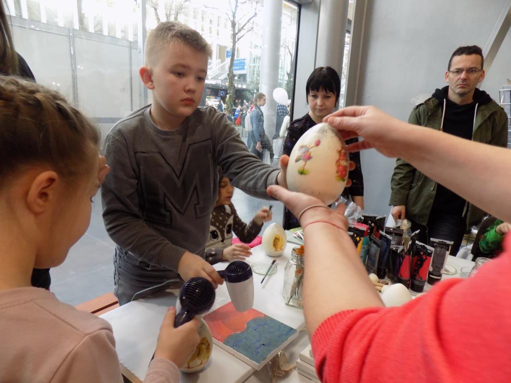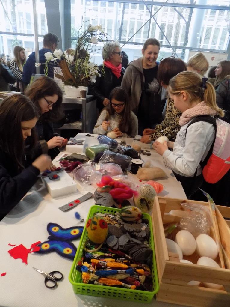 W dniu 2 marca 2019 roku ofertę edukacyjną zaprezentowało nasze Centrum. Uczniowie kierunku Terapeuta zajęciowy prowadzili warsztaty podczas których zaprezentowali zdobienie jaj wielkanocnych i podobrazi technikami: serwetkową, easy painting, z użyciem szablonów. Na drugim stoisku odbywały się warsztaty filcowania na sucho z użyciem wełny czesankowej, którą zdobiliśmy ozdoby z filcu: bransoletki i motyle. Można było też wykonać zająca na styropianie z wykorzystaniem czesanki i filcu. Warsztaty cieszyły się dużym zainteresowaniem. Nasza oferta skierowana była do młodzieży licealnej stojącej przed trudnym wyborem dalszej drogi własnego rozwoju, młodzieży szkolnej oraz rodziców i dzieci rozpoczynających dopiero swoją edukacyjną podróż.